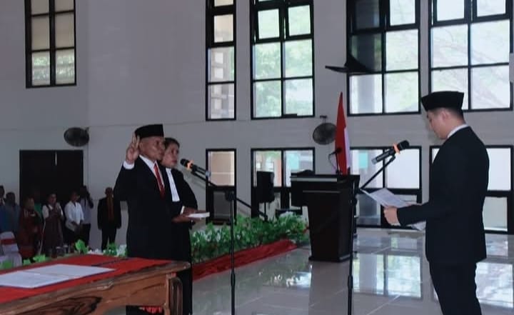 Prosesi pelantikan diawali dengan pengambilan sumpah jabatan yang dipandu oleh Pendeta Ny. M. Sabono, S.Th., disaksikan oleh Inspektur Daerah Kabupaten Kepulauan Tanimbar dan Kepala Dinas Perikanan Kabupaten Kepulauan Tanimbar, serta dipimpin langsung oleh Bupati Ricky Jauwerissa.